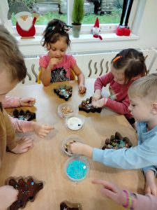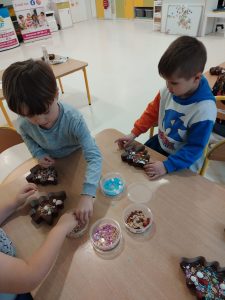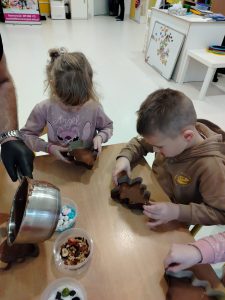 3 grudnia odbyły się w naszym przedszkolu warsztaty czekoladowe. Dzieci poznały i posmakowały różne rodzaje czekolady oraz dowiedziały się skąd pochodzi ten ulubiony przysmak wszystkich milusińskich. Każdy wykonał także choinkę czekoladową i samodzielnie ją  udekorował.