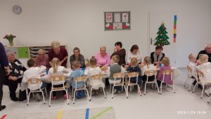 24.01.2024r. świętowaliśmy w grupie „Jeżyki” Dzień Babci i Dzień Dziadka. Przedszkolaki czekały na nich z ogromną niecierpliwością. Babcie i Dziadkowie mieli okazję podziwiać swoje wnuczęta w przygotowanym dla nich programie artystycznym. Dzieci zaprezentowały wiersze, tańce i piosenki. Potem wręczyły własnoręcznie wykonane laurki i zaprosiły Babcie i Dziadków na przygotowany przez rodziców poczęstunek. Szczęśliwe i rozpromienione