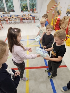 W tym roku Dzień Chłopaka świętowaliśmy pod hasłem „Plac budowy”. Nasza grupa zamieniło się w prawdziwą strefę prac budowlanych – dzieci wcieliły się w rolę budowniczych, architektów i kierowników budowy. Przedszkolaki uczestniczyły w zabawach ruchowych, układały konstrukcje z klocków i poznawały sprzęty potrzebne na budowie. Nie zabrakło też niespodzianek i wspólnych tańców. To był dzień pełen radości, kreatywności i dobrej zabawy!