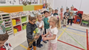dziewczynki zaśpiewały chłopcom 100 lat, złożyły im życzenia i wręczały upominki. Wszyscy wzięli udział w zabawach
