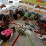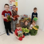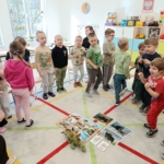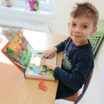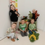 5 marca „Wiewiórki” świętowały Dzień Dinozaura. Z tej okazji odbyły niezwykłą podróż do świata prehistorycznych gadów. Dzieci stworzyły wystawę z dinozaurów, które przyniosły z domu. Zgłębiły wiedzę na temat życia dinozaurów, wysłuchały opowiadania, z którego dowiedziały się, jak żyły dinozaury, jak wyginęły i kim jest paleontolog. Na kolorowych ilustracjach, zobaczyliśmy jak wyglądają szkielety niektórych dinozaurów. Ponadto dopasowywaliśmy ich cienie i układaliśmy puzzle z dinozaurami. Wykorzystując dostępne w sali zabawki, dzieci klasyfikowały je na wielkość, rodzaj czy pokarm, którym się żywiły. W trakcie zabaw ruchowych dzieci chętnie inscenizowały ruchem sposób poruszania się tych stworów oraz naśladowały ich przeraźliwe odgłosy. Na koniec wykonaliśmy pracę plastyczną