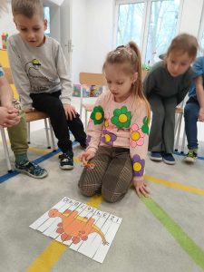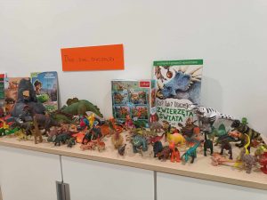 Dinozaury to stworzenia, które od dawna niezwykle fascynują szczególnie najmłodszych. Nie tylko zaskakują swoim wyglądem i wielkością, ale też kryją wiele tajemnic. Dlatego obchodziliśmy w przedszkolu Dzień Dinozaura. Z tej okazji zorganizowaliśmy zajęcia, które wprowadziły dzieci w prehistoryczny świat i przybliżyły im życie tych wyjątkowych gadów. Przedszkolaki m.in. dowiedziały się jak wyglądały, czym się żywiły oraz w jaki sposób prawdopodobnie wyginęły. Podczas zaje dzieci chętnie porównywały wygląd dinozaurów, określały ich wielkość, segregowały je według określonej cechy. Z łątwością rozpoznawały nazwy przyniesionych z domu dinozaurów, dzieląc się swoją wiedzą. W zorganizowanym kąciku można było podziwiać diplodoki, tyranozaury, triceratopsy, pterodaktyle itp. Nie zabrakło ciekawych zabaw ruchowych oraz plastycznych związanych z tematyką zajęć. Jednak największe zainteresowanie wzbudziły zajęcia badawcze, dzięki którym dzieci mogły poznać działanie wulkanu.