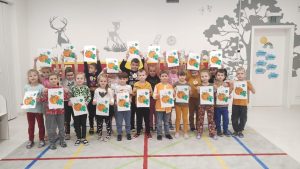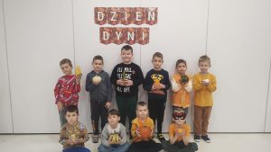 W czwartek 31 października obchodziliśmy w naszej grupie Dzień Dyni, który był fantastyczną okazją do wspólnej zabawy, przepełnioną pięknym jesiennym kolorem pomarańczowym. W świętowaniu wzięły udział  wszystkie przedszkolaki z grupy, które tego dnia przyniosły do przedszkola dynie o różnych kształtach, kolorach i gabarytach. Dzieci zobaczyły, co kryje się w środku dyni oraz co można z niej przyrządzić. Wykonaliśmy  piękną pracę plastyczną, która stała się ozdobą naszego przedszkola.  Nie zabrakło zawodów sportowych z wykorzystaniem dyni oraz dyniowych tańców. Niemałą atrakcją okazała się fotobudka, która zwieńczyła ten pełen atrakcji dzień.