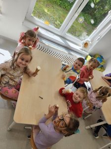 29 maja w naszym przedszkolu odbyły się uroczyste obchody Dnia Dziecka – pełne radości, uśmiechu i niezwykłych atrakcji! Był to dzień wyjątkowy, kolorowy i magiczny – dokładnie taki, na jaki zasługują wszystkie dzieci. Na naszych małych przedszkolaków czekało mnóstwo niespodzianek: gry i zabawy ruchowe, loteria fantowa, malowanie twarzy, zaplatanie kolorowych warkoczyków, malowanie na foli i tekturowych domkach, bańki mydlane, tańczący miś oraz dmuchane zjeżdżalnie. Ogromną atrakcją była także wizyta Policji – z Pyrkiem. Dzieci z ogromnym entuzjazmem uczestniczyły we wszystkich aktywnościach. Radość i uśmiech nie znikały z ich twarzy ani na chwilę – to była prawdziwa eksplozja pozytywnej energii! Dzień Dziecka upłynął w cudownej, rodzinnej atmosferze