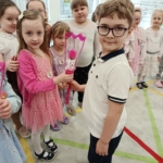 Dzień Kobiet to wyjątkowy dzień, ważny dla wszystkich kobiet, zarówno tych dużych, jak i małych. W naszym przedszkolu uroczystość z tej okazji odbyła się 10 marca. Radosna atmosfera panowała już od samego rana. Po obejrzeniu występu „Biedronek”, zaczęliśmy świętowanie w naszej grupie. W tym szczególnym dniu wszystkie kobietki otrzymały serdeczne życzenia, kwiaty i upominki. Chłopcy z ogromnym zaangażowaniem starali się, aby ten dzień uczynić wyjątkowo miłym. Było można usłyszeć taneczną muzykę, w rytm której bawiły się zarówno dziewczynki, jak i chłopcy. Wiele radości sprawiły dzieciom przygotowane z tej okazji zabawy i konkurencje. Uśmiechnięte buzie przedszkolaków, a zwłaszcza dziewczynek świadczyły o miło spędzonym czasie.