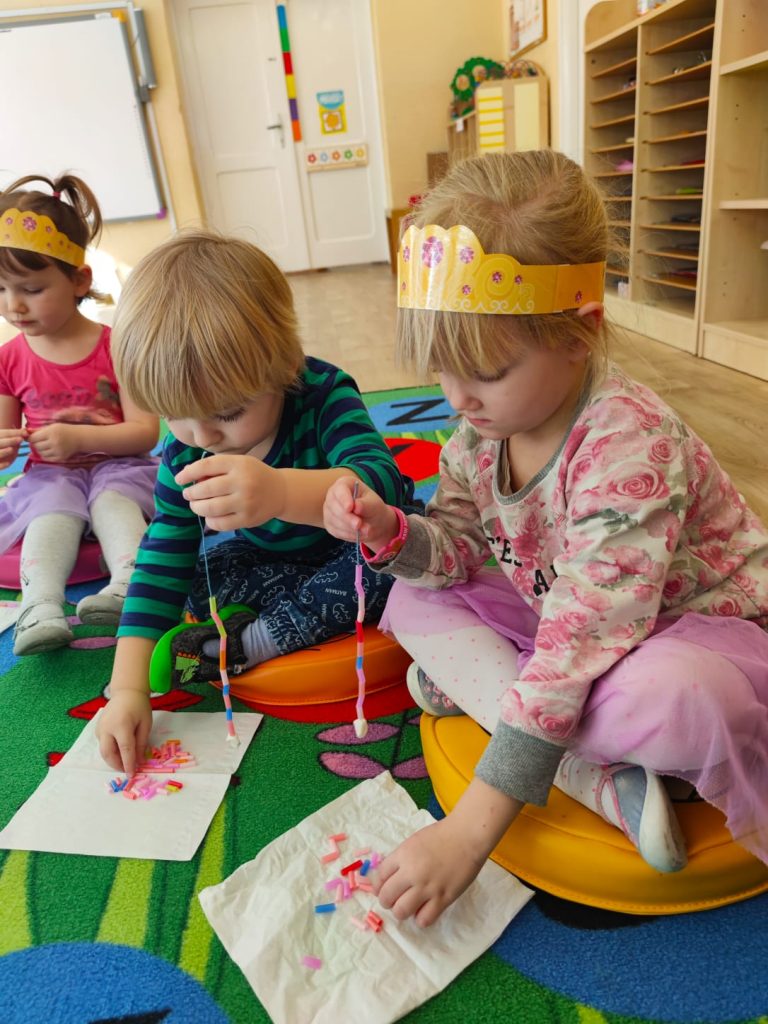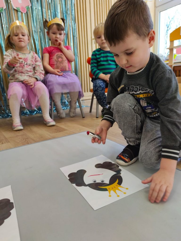 Dzień kobiet w grupie Żabki przebiegł bardzo radośnie. Choć niestety nie wszystkie dzieci tego dnia mogły przyjść do przedszkola. Od samego rana małe kobietki zostały księżniczkami, które losowały zadania do wykonania. Z kolorowych ziarenek w mig wyrosły nam kwiatki. Sprawdzaliśmy czy chłopcy potrafią robić makijaż, wspólnie robiliśmy biżuterię z koralików. Nie obyło się bez konkurencji z balonami .Oczywiście nie zabrakło też upominków 😉