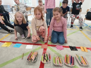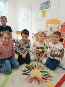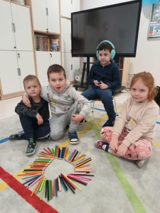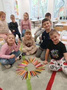 W listopadzie dzieci z grupy „Niedźwiadki” obchodziły DZIEŃ KREDKI”. Z tej okazji odbyły się zabawy z kredkami w roli głównej. Przedszkolaki brały udział w zabawach muzyczno- ruchowych przy piosence pt.” Kolorowe Kredki”. Dzieci obejrzały film „Jak powstają kredki bambino”, poznały rodzaje kredek, tworzyły zbiory według kryterium koloru, kształtu, wielkości. Wysłuchały również opowiadanie pt. „Kolorowe kredki i kraina wyobraźni” z wykorzystaniem teatrzyku kamishibaj a na koniec każdy przedszkolak wykonał swoją kredkę, aby przyzdobić nasza salę. Był to bardzo wesoły i kolorowy dzień.
