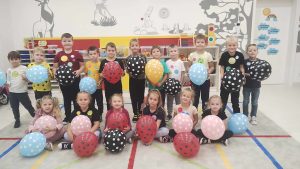 Dnia 18 września grupa Biedronki obchodziła Dzień Kropki.                                                                    Dzień Kropki to międzynarodowe święto kreatywności, odwagi i odkrywania swoich talentów. Na zajęciach dzieci poznały historię tego święta. Uważnie wysłuchały opowiadania, jak to zwyczajna kropka zmieniła świat małej dziewczynki o imieniu Vashti. Historia ta uświadomiła przedszkolakom, że każdy z nas ma jakieś ukryte zdolności, TALENT. Tego dnia również dostrzegaliśmy kropki tam, gdzie wcześniej nikt na nie nie zwracał uwagi. Okazało się, że kropki towarzyszą nam w naszym codziennym życiu: są w kropkach biedronki, z kropki można utworzyć słońce,  bombkę choinkową, kolorową kulę, piłkę . Ten dzień upłynął nam  na zabawach wypełnionych kropkami.