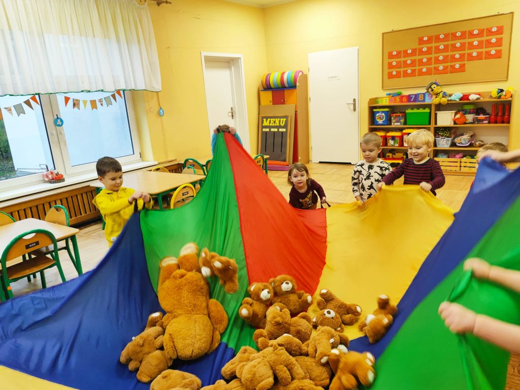 25 listopada 2021 roku przypadł Światowy Dzień Pluszowego Misia. Jeżyki w tym dniu miały mnóstwo dobrej zabawy. Wykonywały zadania misiowe, przygotowały opaski misiowe i zatańczyły do piosenki misiowej. Misie każde dziecko lubi :-).