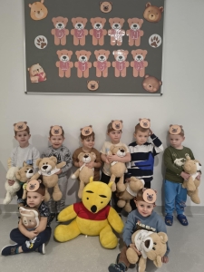 25 listopada swoje święto obchodzi Pluszowy Miś – najmilsza zabawka, najlepszy przyjaciel dzieci i niezastąpiona przytulanka przy zasypianiu. Tego dnia, każde dziecko przyszło do przedszkola ze swoim „milutkim” przyjacielem, by wspólnie z innymi celebrować te pełne radości chwile. Na dzieci i ich misie czekało wiele atrakcji. Poznały historię święta, bawiły się przy misiowych piosenkach, uczestniczyły w zabawach ruchowych i zręcznościowych. Nie zabrakło konkursów, quizów i zgadywanek o słynnych misiach występujących w znanych bajkach. Przedszkolaki również wykonały przepiękne prace plastyczne z misiem w roli głównej. Chętne dzieci mogły także skosztować pysznego przysmaku wszystkich misiów- słodkiego miodku. Ten wyjątkowy dzień był pełen uśmiechu, radości i świetnej zabawy.