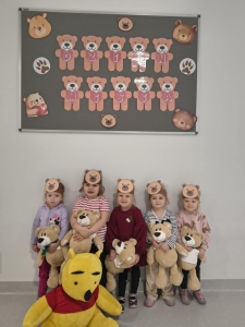 25 listopada swoje święto obchodzi Pluszowy Miś – najmilsza zabawka, najlepszy przyjaciel dzieci i niezastąpiona przytulanka przy zasypianiu. Tego dnia, każde dziecko przyszło do przedszkola ze swoim „milutkim” przyjacielem, by wspólnie z innymi celebrować te pełne radości chwile. Na dzieci i ich misie czekało wiele atrakcji. Poznały historię święta, bawiły się przy misiowych piosenkach, uczestniczyły w zabawach ruchowych i zręcznościowych. Nie zabrakło konkursów, quizów i zgadywanek o słynnych misiach występujących w znanych bajkach. Przedszkolaki również wykonały przepiękne prace plastyczne z misiem w roli głównej. Chętne dzieci mogły także skosztować pysznego przysmaku wszystkich misiów- słodkiego miodku. Ten wyjątkowy dzień był pełen uśmiechu, radości i świetnej zabawy.