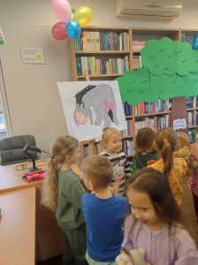 Z okazji Światowego Dnia Pluszowego Misia Biblioteka Publiczna w Borku zorganizowała szereg atrakcji dla najmłodszych czytelników. W świętowaniu wzięły również ” Wiewiórki” w dniu 20 listopada. Dzieci wysłuchały przygód Kubusia Puchatka. Zapoznały się , w jaki sposób pszczoły produkują  miód i jakie są jego właściwości. Wykonały zadania przygotowane przez panie bibliotekarki, zdobywając maksymalną ilość punktów. Było dużo zabawy i mnóstwo książeczek z bibliotecznych zbiorów do przeglądania. Zwieńczeniem czasu spędzonego w bibliotece było pamiątkowe zdjęcie z misiami oraz naklejka z najsympatyczniejszym przyjacielem każdego dziecka-misiem.