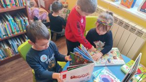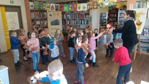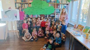 22 listopada grupa „Zajączki” odwiedziła bibliotekę z okazji Światowego Dnia Pluszowego Misia. Panie bibliotekarki przygotowały wspaniałe zajęcia na temat ulubionej postaci bajkowej Kubusia Puchatka. Przedszkolaki spędziły bardzo miło czas, a na koniec każdy dostał naklejkę z misiem.