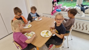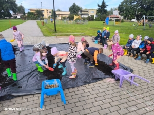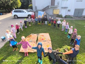 Corocznie w naszym przedszkolu jesienią odbywa się Święto Pieczonego Ziemniaka. Powodem do uhonorowania tego warzywa jest jego kulinarna popularność, możliwość przypomnienia tradycji ludowych odbywających się podczas jesiennych zbiorów ziemniaków, a przede wszystkim wywołanie radości ze wspólnej zabawy oraz udziału w konkurencjach, których bohaterem jest …. ziemniak.