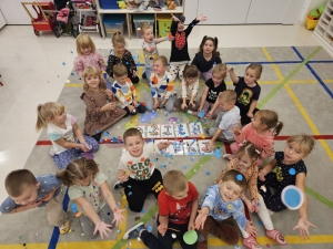 15 września obchodziliśmy Międzynarodowy Dzień Kropki – święto kreatywności, odwagi i wiary we własne możliwości. Tego dnia dzieci przyszły ubrane w kropkowe stroje, a sale wypełniły się kolorowymi dekoracjami. Przedszkolaki uczestniczyły w zabawach plastycznych, ruchowych i muzycznych, w których główną rolę odgrywała kropka. Wspólnie odkrywaliśmy, że nawet z jednej małej kropki może powstać coś niezwykłego. To był radosny i twórczy dzień pełen uśmiechów i dobrej zabawy!