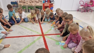małych i dużych. Kropki gościły w zabawach ruchowych jak i matematycznych. Tego dnia