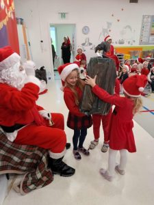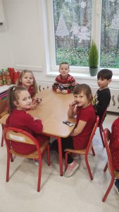 6 grudnia nasze przedszkole odwiedził bardzo miły i długo oczekiwany gość. Miał czerwony strój, długą, białą brodę, dźwigał na plecach bardzo ciężki worek, a w nim prezenty. To nie mógł być nikt inny tylko MIKOŁAJ- niezwykle wesoły, rozmowny i chętny do wspólnej zabawy i tańca.  Jak co roku przybył na czas. Spotkanie przebiegało w bardzo radosnej i przyjaznej atmosferze. Przedszkolaki śpiewały Mikołajowi piosenki, zaprezentowały taniec.  Święty Mikołaj obdarował wszystkie dzieci słodkimi prezentami. Na twarzach dzieci malowała się wielka a radość i przejęcie, a także nadzieja na kolejne spotkanie. Święty Mikołaju bardzo dziękujemy za odwiedziny i do zobaczenia za rok!