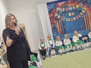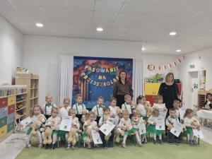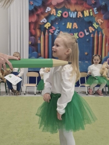 Pasowanie na przedszkolaka to wyjątkowa uroczystość, która  w naszej grupie odbyła się 17 października. Od samego rana trwały przygotowania, a w sali gromadzili się goście. Mali artyści zaprezentowali przygotowane piosenki, tańce oraz wierszyki. Dla przedszkolaków był to pierwszy, bardzo ważny występ. Po części artystycznej nastąpił akt pasowania, czyli dotknięcie ramienia każdego przedszkolaka ogromną kredką przez Panią Dyrektor Renatę Matelską. Dla dzieci było to wielkie przeżycie, a dla rodziców powód do dumy i zadowolenia ze swoich pociech.