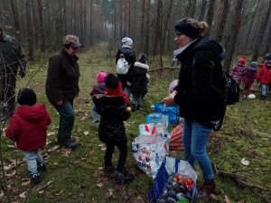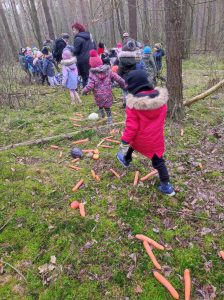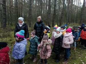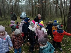 Od 27 lutego do 2 marca w naszym przedszkolu została zorganizowana akcja ” Dorośli i dzieciaki, pomóżcie nakarmić leśne zwierzaki!”. Dzięki naszym wspaniałym przedszkolakom i ich rodzicom udało nam się zebrać kilka skrzynek jabłek, marchewki, buraków, kapusty a nawet trochę kasztanów. W piątek 4 marca dzieci z grupy Wiewiórki i Motylki wybrały się na wycieczkę do lasu Leśnictwa Stawiszyn, by przedstawicielom Koła Łowieckiego „Widawa” przekazać karmę dla sarenek, zajęcy, danieli i jeleni. Pani Basia i pan Tomek przyjęli nas bardzo serdecznie i pomogli nam zorganizować leśną stołówkę. Opowiedzieli nam również o tajnikach życia leśnej zwierzyny i zwyczajach myśliwskich,. Darz bór!