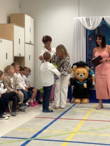 24 czerwca w naszej grupie „Niedźwiadki” odbyło się uroczystości zakończenie roku szkolnego 2024/2025. Starszaki, które po wakacjach idą do szkoły żegnały przedszkole. Przedszkolaki polonezem rozpoczęły część artystyczną. Następnie były wiersze, piosenki i wspaniałe tańce. Po części artystycznej przyszedł czas na podziękowania, życzenia dla rodziców, dzieci i nauczycielek. Był to dzień pełen wzruszeń i niezapomnianych chwil. Absolwentom naszego przedszkola życzymy wielu sukcesów i spełnienia marzeń, a wszystkim dzieciom bezpiecznych i radosnych wakacji. Rodzicom natomiast dziękujemy za zaangażowanie oraz każdą wspólną chwilę, którą mogliśmy razem spędzić.