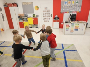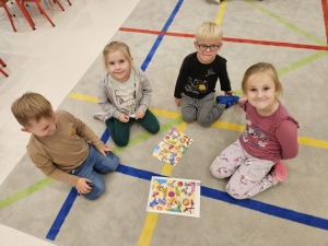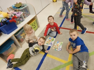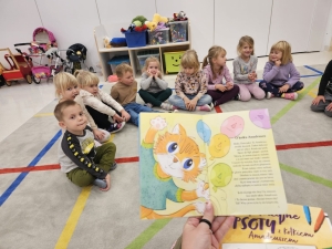 1 października nasz Biedroneczki rozpoczęły projekt “Z kotem Amadeuszem przez świat wartości i emocji”. Dzisiaj poznały główną postać projektu- kota Amadeusza. Wysłuchaliśmy opowiadania pt. “O kotku Amadeuszu”, które przybliżyło nam postać głównego bohatera. Podzieleni na grupy, wspólnie układaliśmy puzzle związane z Amadeuszem. Na koniec zajęć tańczyliśmy wspólny taniec.