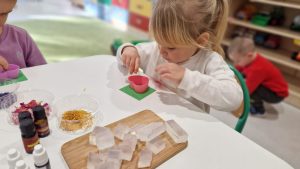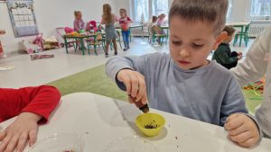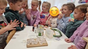 W sali Żabek unosiły się niecodzienne zapachy. W ramach Ogólnopolskiego Projektu Edukacyjnego ,, Szlachetnie i zdrowo z małpką Iwoną ” dzieci wykonały mydełka. To niecodzienna okazja,aby własnoręcznie wykonać pachnące i idealne do kąpieli mydło. Zajęcia pozwalają przenieść dzieci w pachnący świat mydła, umożliwiają poznanie mydlarskie historii i pobudzenie kreatywnego myślenia. Dodatkowo dzieci przypomniały sobie etapy prawidłowego mycia rąk. Przedszkolaki nauczyły się przez doświadczenia, iż należy bardzo często myć ręce mydłem, który niszczy bakterie i dzięki czemu dzieci są zdrowe, nie przenoszą zarazków.
