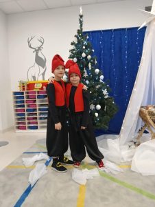 Boże Narodzenie to niezwykły, radosny i magiczny czas. Jest to czas rodzinnych spotkań i refleksji. W naszej grupie również zapanował świąteczny nastrój. Wszystko za sprawą spotkania z rodzicami, które odbyło się 19 grudnia. W całym przedszkolu panował Bożonarodzeniowy klimat, który dopełniały lampki, ozdoby oraz odświętnie nakryte stoły z poczęstunkiem. Najważniejszym i najbardziej oczekiwanym momentem był występ artystyczny przygotowany przez dzieci. Biedronki zaprezentowały gościom ” Bajkowe Jasełka”. Dzieci z ogromnym zaangażowaniem odgrywały swoje role, śpiewały kolędy i pastorałki. Po występie dzieci obdarowały rodziców drobnym upominkiem. Ogromne emocje wywołała wizyta Gwiazdora, który wręczył dzieciom prezenty. Spotkanie upłynęło w miłej atmosferze.