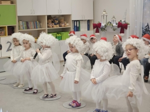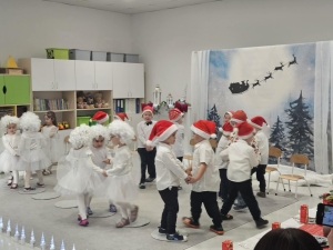16 grudnia w grupie ” Jeżyki” odbyło się uroczyste spotkanie świąteczne z rodzicami, podczas którego dzieci zaprezentowały swoje talenty w postaci występów artystycznych. Był to czas wspólnego kolędowania, dzielenia się opłatkiem i składania sobie życzeń. Spotkanie uświetniły odwiedzimy Świętego Mikołaja, który obdarował dzieci wspaniałymi prezentami. Spotkanie upłynęło nam w miłej, serdecznej atmosferze i na długo pozostanie w naszej pamięci.