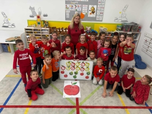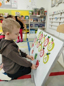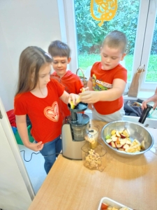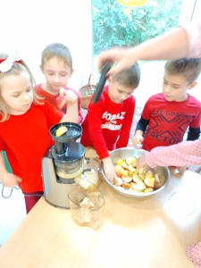 26 września obchodziliśmy Światowy Dzień Jabłka w ramach ogólnopolskiego projektu „Kreatywne Dni Nietypowe”. Dzieci poznały właściwości jabłka za pomocą dotyku, smaku i węchu. Przedszkolacy wzięli udział w torze przeszkód z jabłkami. Na koniec z przyniesionych jabłek przez rodziców wspólnie wykonaliśmy sok jabłkowy. Wszystkim bardzo smakował. Pani Kamili dziękujemy za użyczenie wyciskarki do owoców .