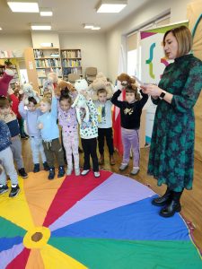 do Biblioteki, żeby wziąć udział w „MISIOLIMPIADZIE”. Ten wyjątkowy dzień był pełen uśmiechu i świetnej zabawy. Dzieci były szczęśliwie, iż mogły spędzić tyle czasu ze swoimi pluszowymi ulubieńcami oraz pokazać ich swoim koleżankom i kolegom z grupy.