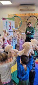 do Biblioteki, żeby wziąć udział w „MISIOLIMPIADZIE”. Ten wyjątkowy dzień był pełen uśmiechu i świetnej zabawy. Dzieci były szczęśliwie, iż mogły spędzić tyle czasu ze swoimi pluszowymi ulubieńcami oraz pokazać ich swoim koleżankom i kolegom z grupy.