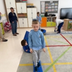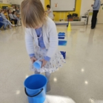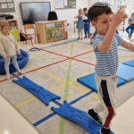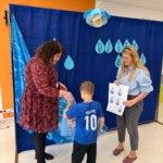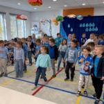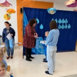 Dzieci w tym dniu ubrane w kolor niebieski wzięły udział w zabawach i konkurencjach związanych z wodą min. niebieski tor przeszkód, koło fortuny, zadania z rybami, doświadczenia oraz zagadki, tor przeszkód z kubkiem wody. Każda grupa musiała uzbierać 5 kropelek. Na koniec wszyscy otrzymali dyplomy za udział w Dniu Wody oraz upominki przygotowane przez Panią Joannę Piotrowską, która reprezentowała Państwowe Gospodarstwo Wodne Wody Polskie.