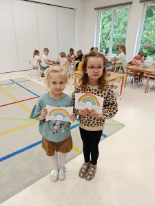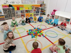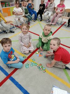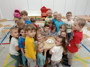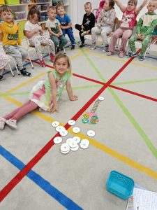 19 maja, dzieci z grupy Motylki przyszły ubrane na kolorowo. Przedszkolaki wysłuchały opowiadania: „Kolory tęczy”. Rozmawialiśmy o tym, ile tęcza ma kolorów, nazywaliśmy je. Układaliśmy kolory na palecie barw. Dzieciom bardzo podobało się doświadczenie z kolorowymi cukierkami, dzięki któremu dzieci mogły zaobserwować zjawisko powstawania tęczy. Bawiliśmy się również kolorowymi piłeczkami, przeliczaliśmy je, segregowaliśmy.
