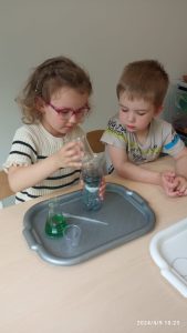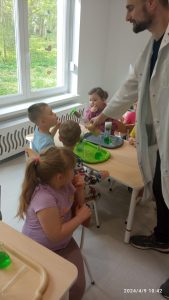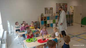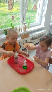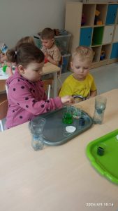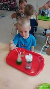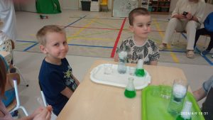 9 kwietnia dla dzieci młodszych w naszym przedszkolu odbyły się warsztaty chemiczne „Ekowarsztaty”. Jeżyki miały okazje poeksperymentować. Najbardziej zaciekawiła ich zielona woda oraz suchy lód, który spowodował niesamowite wrażenie.
