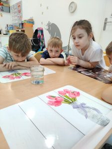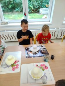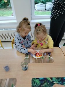 12 czerwca w grupie „Pszczółki” odbyły się warsztaty chemiczne poprowadzone przez ciocię Stasia – Panią Kasię, która jest nauczycielem chemii w szkole średniej. Pani Kasia przygotowała bardzo ciekawe eksperymenty i doświadczenia z użyciem kolorowych barwników i innych substancji. Dzieci z zainteresowaniem obserwowały i podziwiały efekty.