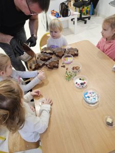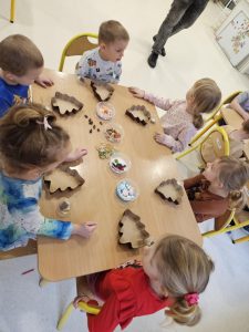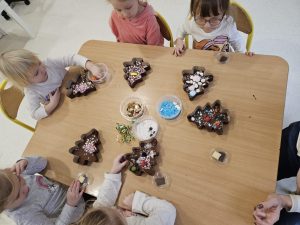 3 grudnia odbyły się w naszym przedszkolu warsztaty czekoladowe. Dzieci poznały i posmakowały różne rodzaje czekolady oraz dowiedziały się skąd pochodzi ten ulubiony przysmak wszystkich milusińskich. Każdy wykonał choinkę czekoladową i samodzielnie ją udekorował.