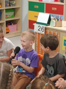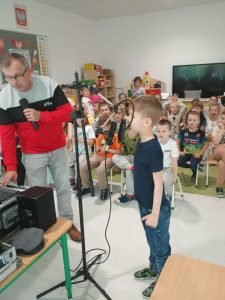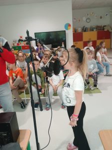 26 maja Wiewiórki wzięły udział w kolejnych warsztatach. Tym razem były to warsztaty muzyczno-dźwiękowe przeprowadzone przez „ Objazdowe Studio Nagrań Bajka”. Podczas spotkania dzieci dowiedziały się jak tworzy się głos w mikrofonie i jak można go przekształcić . Przedszkolaki mówiły wierszyki i śpiewały piosenki do profesjonalnego mikrofonu po czym prowadzący zmieniał ich głos za pomocą specjalnego sprzętu na wolny, szybki, niski lub wysoki. Warsztaty wywołały wiele pozytywnych wrażeń i emocji.