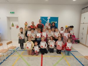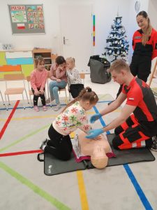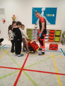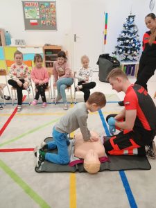 7 stycznia w grupie ” Wiewiórki odbyło się spotkanie z ratownikami medycznymi, którzy przeprowadzili warsztaty z pierwszej pomocy. ” wiewiórki” podczas zajęć wykazały się dużą znajomością udzielania pierwszej pomocy. Zostały również zapoznane ze sprzętem ratującym życie i utrwaliły znajomość numerów alarmowych.