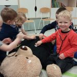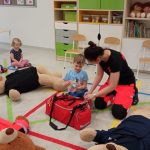 12.03.24r. dzieci z najmłodszych grup z naszego przedszkola, czyli Żabki, Jeżyki i Zajączki, uczestniczyły w warsztatach z pierwszej pomocy „Uratuj Misia”. Przedszkolaki poznały zastosowanie podstawowego sprzętu medycznego, po czym wcieliły się w małych ratowników. Z pomocą misiaków samodzielnie wykonały proste opatrunki z bandaży i plastrów. Bardzo ciekawym doświadczeniem była możliwość posłuchania bicia swojego serca przy użyciu przez dzieci prawdziwych stetoskopów. Pani ratownik w bardzo przystępny dla dzieci sposób i używając specjalnych rekwizytów przybliżyła dzieciom wyposażenie i działanie poszczególnych służb (Policja, Straż Pożarna i Pogotowie). Dzieci utrwaliły również numer alarmowy. Nauczyły się, jak należy zachować się w sytuacji zagrożenia życia i zdrowia. Na zakończenie każdy przedszkolak otrzymał Dyplom z kolorowanką, odznakę małego ratownika oraz mini apteczkę ( bandaż i plaster).