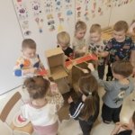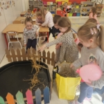 Wspólnie stworzyły w sali dużą, wiejską zagrodę – pojawił się wybieg ze świnkami, zagroda dla owiec oraz kurnik. Zajęcia były pełne zaangażowania i radości, a nauka poprzez zabawę sprawiła dzieciom wiele przyjemności.