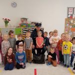 przyniósł również klaser ze znaczkami, który mogliśmy obejrzeć. Pozwolił nam także sprawdzić, jak ciężka jest torba, którą dźwiga. Jak się okazało praca listonosza nie jest taka łatwa – jest to trudny i odpowiedzialny zawód. Na zakończenie dzieci wręczyły Panu Tomkowi własnoręcznie wykonany kwiatek, czekoladki i podziękowanie za tak wspaniałe i ciekawe zajęcia. My także zostaliśmy obdarowani słodkościami. To był bardzo ciekawy