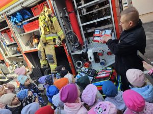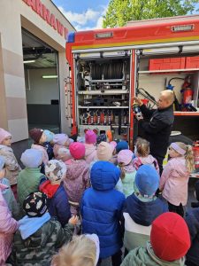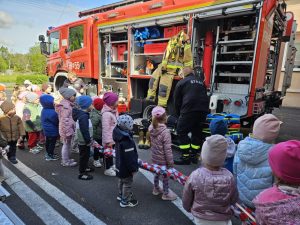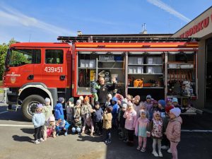 7 maja dzieci z grupy Jeżyki odwiedziły dziś lokalną remizę strażacką. Przedszkolaki z dużym zainteresowaniem wysłuchały opowieści strażaka o codziennej pracy, sprzęcie ratowniczym oraz zasadach bezpieczeństwa. Miały okazję zobaczyć z bliska wozy strażackie oraz mundur strażacki. Wizyta była bardzo pouczająca i dostarczyła dzieciom wielu pozytywnych wrażeń.