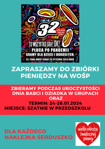 Zapraszamy wszystkich chętnych do zbiórki pieniążków na Wielką Orkiestrę Świątecznej Pomocy.