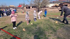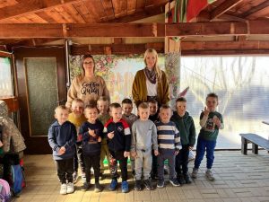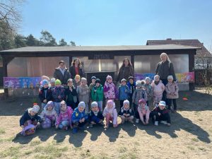 2 kwietnia Żabki udały się z wizytą w Gangu Alpak. Dzieci rozpoczęły wycieczkę pracowicie- musiały wysprzątać zwierzątkom zagrody, napoić je i dać jedzenie. Potem mogły odpocząć – zjedli przepyszne śniadanie i zrobiły dekoracyjne kurczaczki. Na deser zjadły słodkie gniazdka. Gry na zewnątrz bardzo im się podobały, a gdy śpiewały piosenkę zajączek w gniazdku zostawił im prezenty. Dzieci wróciły bardzo zadowolone. Dziękujemy.