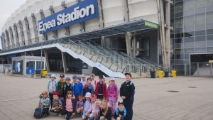 Dnia 16 czerwca grupa „Biedronki” udała się na wycieczkę do Poznania. Celem wycieczki było zwiedzanie stadionu Lecha , popularyzacja sportu oraz zapoznanie z najbliższym regionem. Podczas zwiedzania dzieci obejrzały: Salę Konferencyjną, zakamarki szatni piłkarskiej, trybuny, poziom boiska, Lożę Prezydencką, Salę Legend i Trybunę prasową. Ponadto odbył się trening sportowy. Następnie udaliśmy się do Śremu na Jump Space – Park Trampolin. Po profesjonalnej rozgrzewce pod okiem instruktora korzystano z szeregu atrakcji : trampolin akrobatycznych, ściany wspinaczkowej, koszów do koszykówki, trampolin sportowych oraz basenów wypełnionych gąbkami. Dobra zabawa, uśmiech na twarzy i pozytywna energia nie opuszczała dzieci nawet na sekundę.