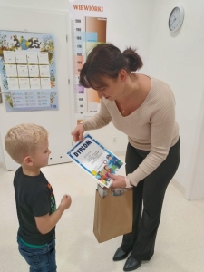 Dnia 15.10.2025 r. w naszym przedszkolu rozstrzygnięto konkurs plastyczny „Bezpieczny Przedszkolak”. Organizatorkami były nauczycielki Martyna Jędrzejczak oraz Sylwia Kycia. Celem konkursu była popularyzacja wiedzy o bezpieczeństwie, w tym zasadach ruchu drogowego, zachowaniach w sytuacjach zagrożenia, rozbudzenie świadomości dzieci na temat ich bezpieczeństwa, utrwalenie dobrych nawyków oraz kształtowanie postaw odpowiedzialności i ostrożności oraz rozwijanie kreatywności i pomysłowości dzieci. Ze względu na duże zainteresowanie konkursem Jury przyznało w kategorii wiekowej 3-4 latków: