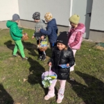 W grupie „Pszczółki” odbyła się wyjątkowa wizyta Zajączka. Dzieci wcześniej przyniosły do przedszkola swoje koszyczki, które w tajemniczy sposób zniknęły. 31 marca, po wyjściu na plac zabaw, na każde dziecko czekała miła niespodzianka – odnaleziony koszyczek wypełniony słodkościami. Radości było co niemiara! Dzieci miały również okazję spotkać Zajączka, przybić z nim „piątkę” oraz zrobić pamiątkowe zdjęcia.