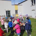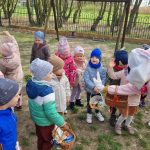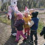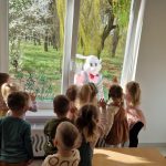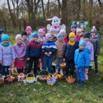 27 marca wszystkie przedszkolaki odwiedził Zajączek wielkanocny. Zanim jednak przyszedł poprosił dzieci o wykonanie zadań specjalnych, które milusińscy zrobili w wielkim skupieniu. Następnie zajączek pochował wszystkie koszyki i każda grupa musiała ich poszukać. Na szczęście wszystkim udało się znaleźć niespodzianki przygotowane przez specjalnego gościa.